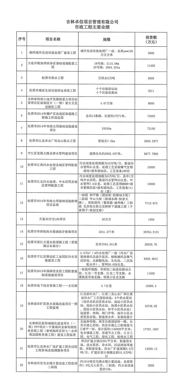 工程建設(shè)項(xiàng)目咨詢(xún)業(yè)績(jī)